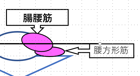 大腰筋と腸骨筋は鼠径部靭帯レベルで合わさり、腸骨筋膜に包まれ、腸恥隆起を越えて走り筋裂孔を通ります。
